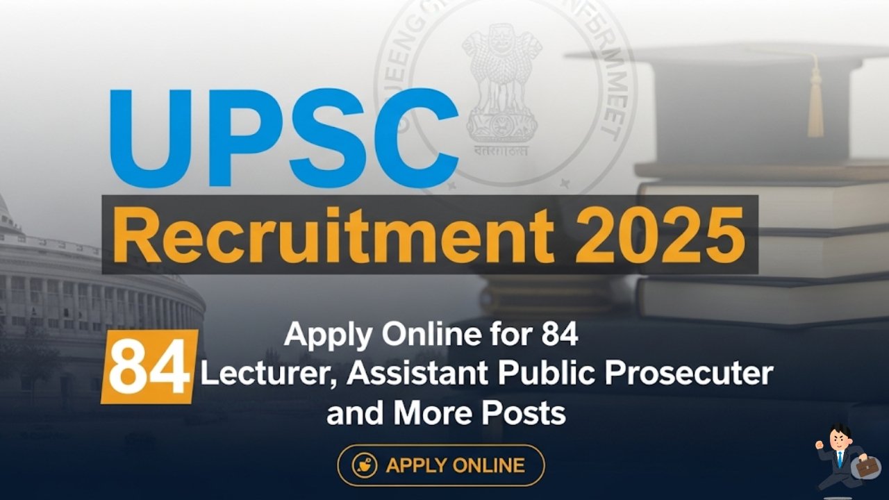संघ लोक सेवा आयोग (Union Public Service Commission – UPSC) ने वर्ष 2025 के लिए एक बड़ा भर्ती अभियान शुरू किया है। UPSC Recruitment 2025 के तहत कुल 84 रिक्तियों के लिए आवेदन आमंत्रित किए गए हैं। इन पदों में लेक्चरर (Lecturer), असिस्टेंट पब्लिक प्रॉसीक्यूटर (Assistant Public Prosecutor) और पब्लिक प्रॉसीक्यूटर (Public Prosecutor) शामिल हैं। अगर आप UPSC भर्ती की तैयारी कर रहे हैं और सरकारी नौकरी पाना चाहते हैं तो यह एक सुनहरा अवसर है।